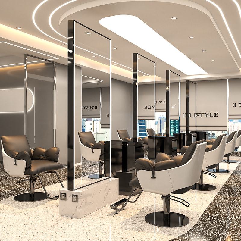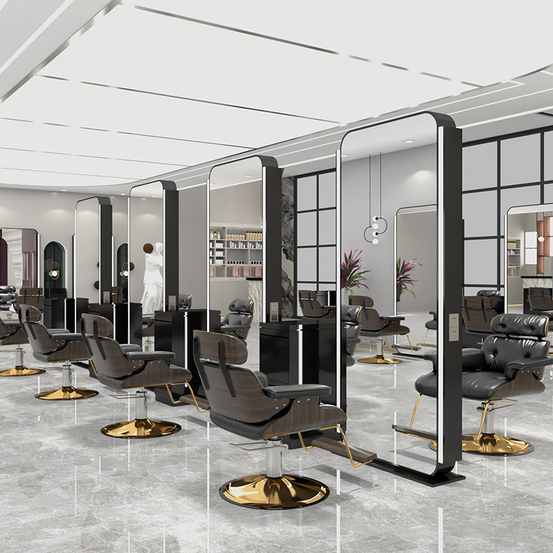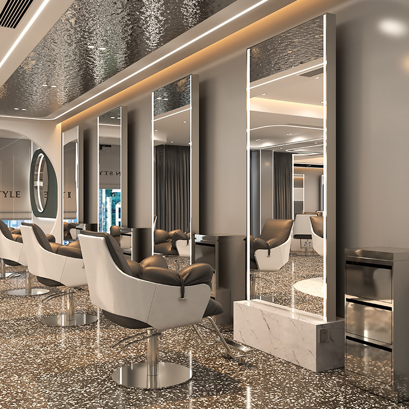 Net red barber shop mirror desk hair salon special hair salon single and double mirror table floor to ceiling with light stainless steel haircut mirror