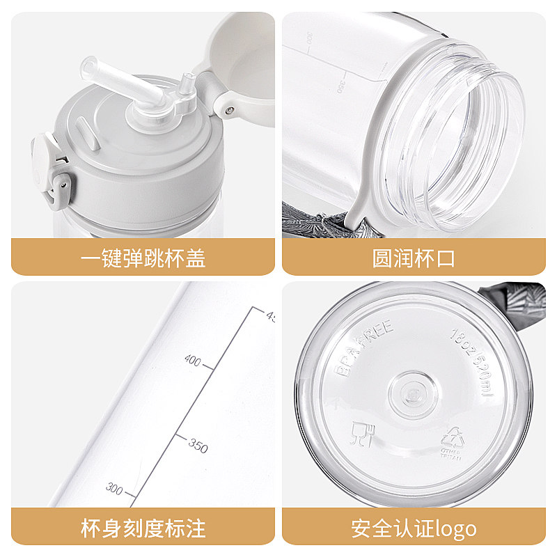 tritan with scale straw water cup female student adult maternal portable sports anti-fall simple summer cup