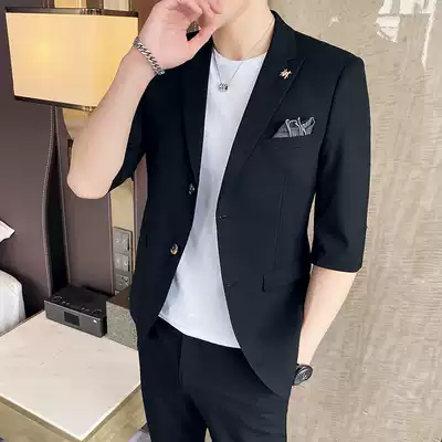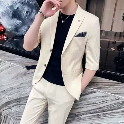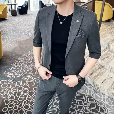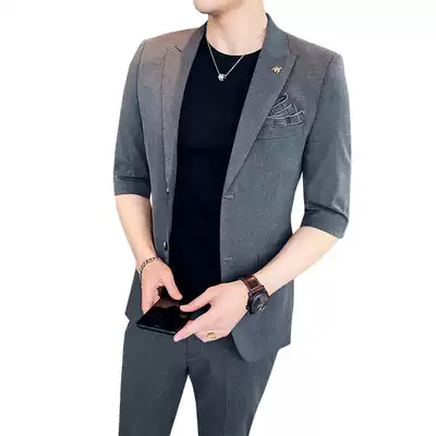 Spring and summer new three-point sleeve men's suit slim mid-sleeve suit two-piece small suit jacket nine-point pants
