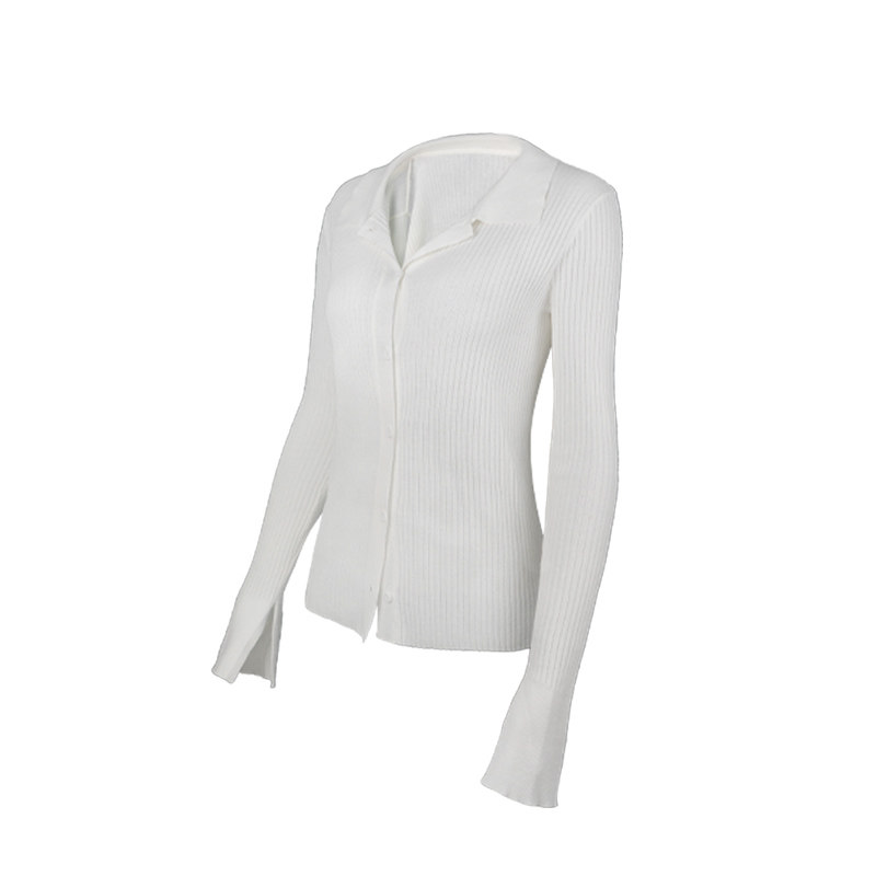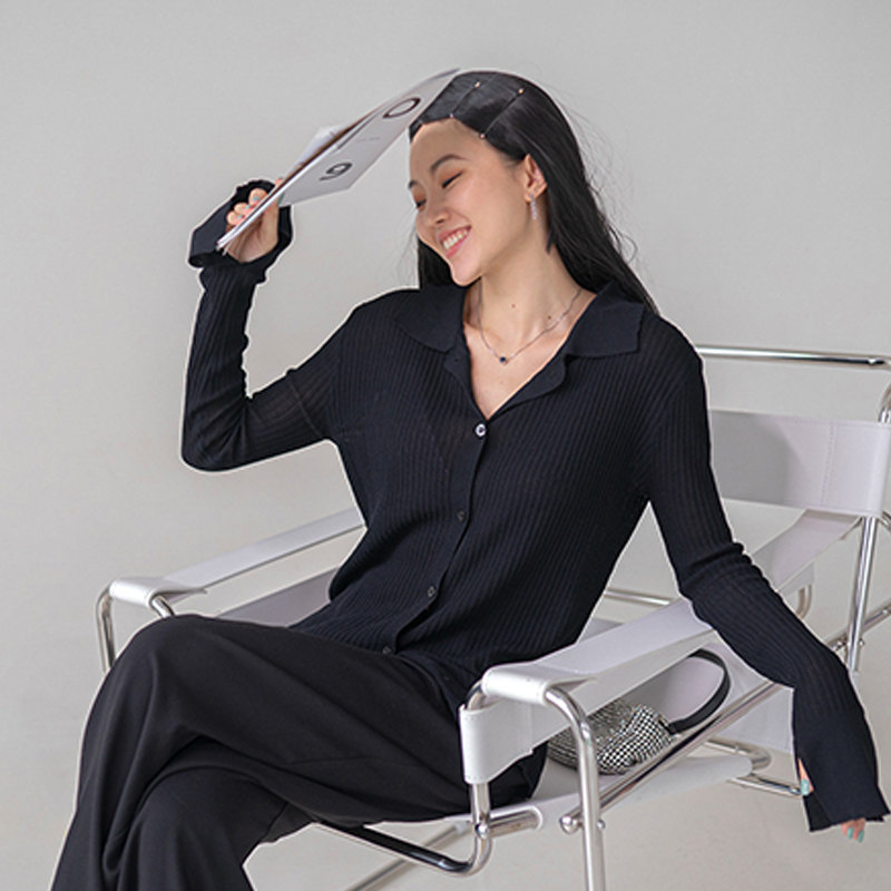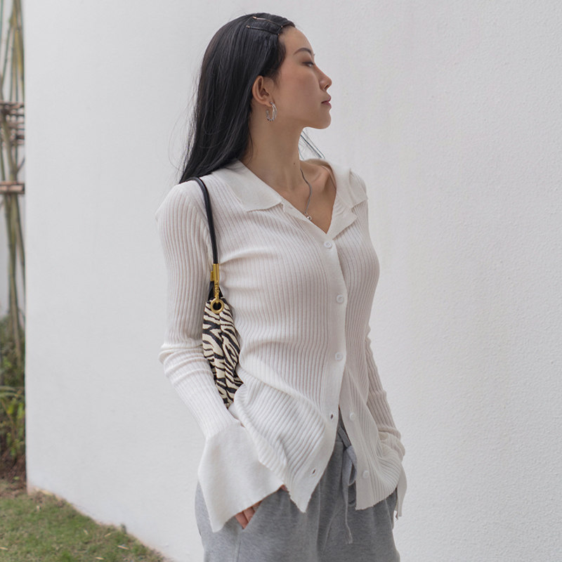MOONA white long-sleeved knitted sweater women's spring and summer thin paper people thin cardigan loose outside with anti-squat top