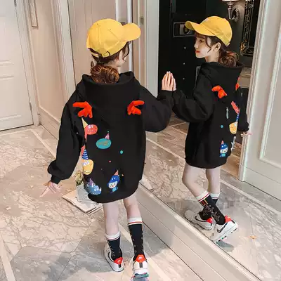 Girls thick T-shirt spring and autumn 2021 new children's middle and large children's loose top net red children's clothing Korean version of the tide thin section of the foreign school