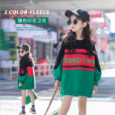 Wow girls thick T-shirt 2021 spring new Korean printing contrast top children's suit Western loose sweater