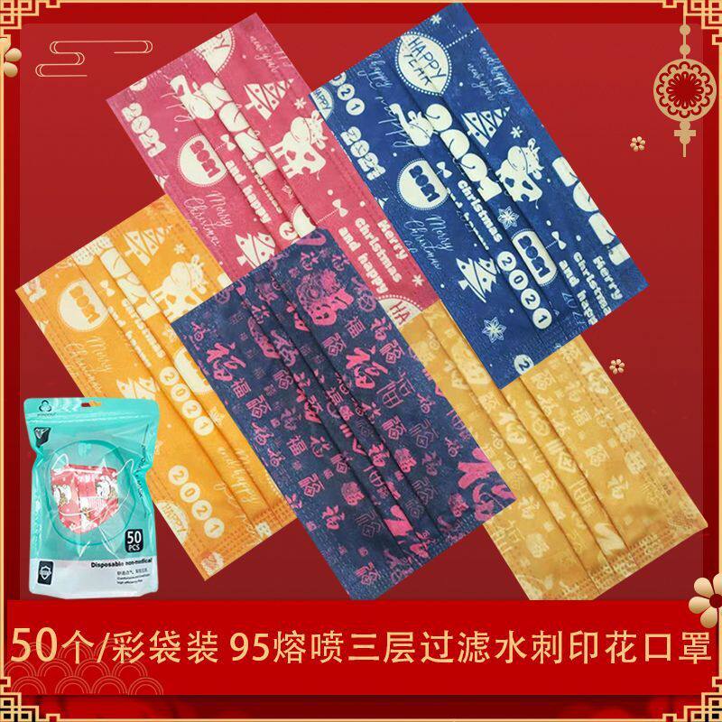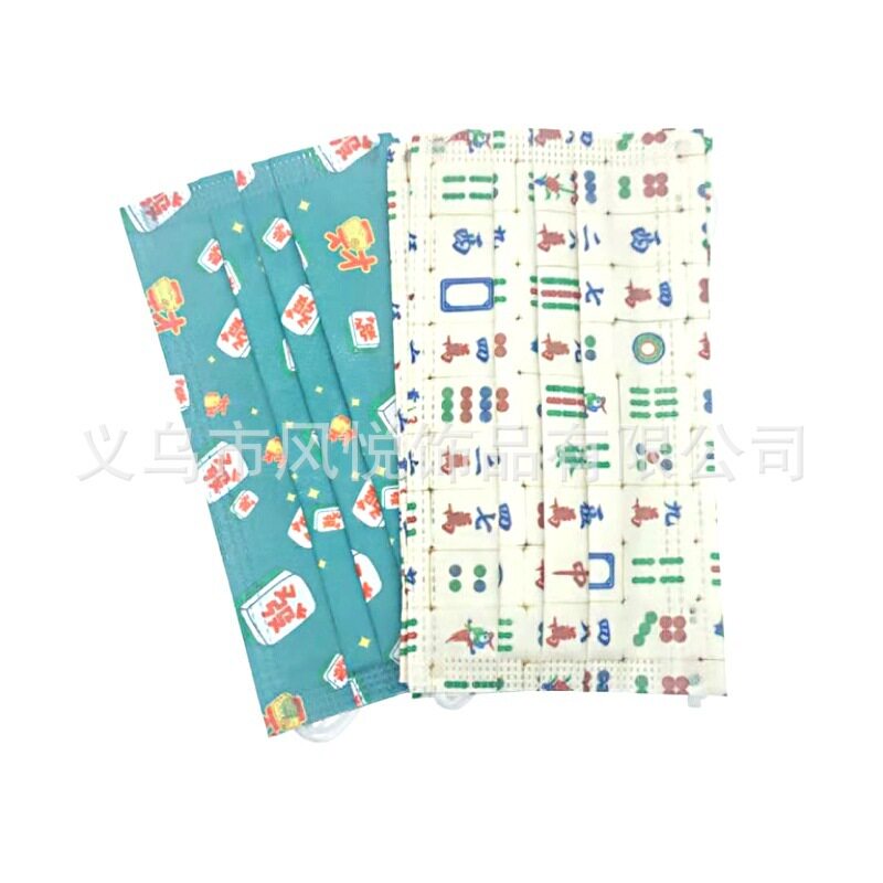 Mahjong Mask Hair Blush Mid White Board Adult Printed Disposable Style 50 Only Packaging Three-layer Breathable Dust Resistant