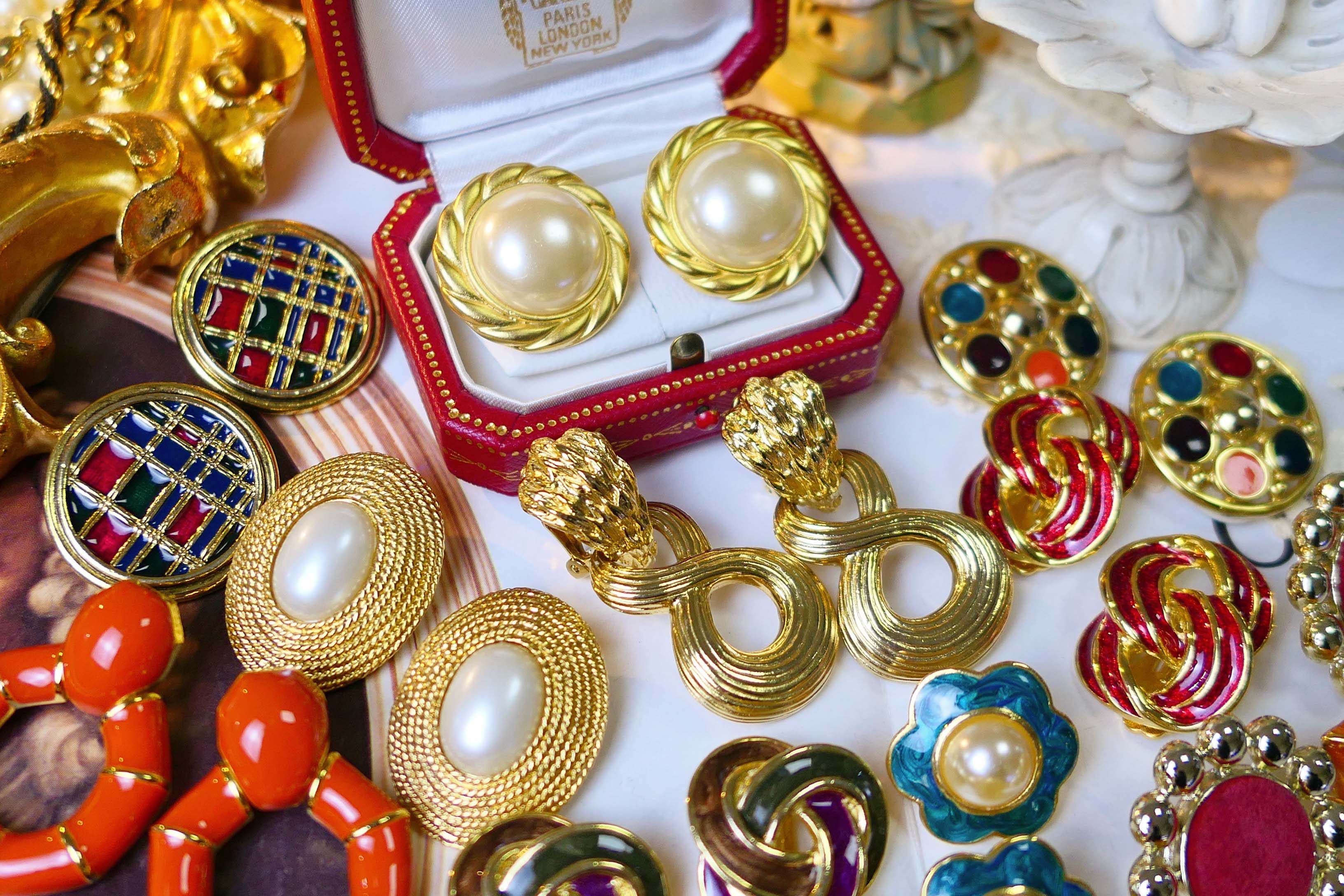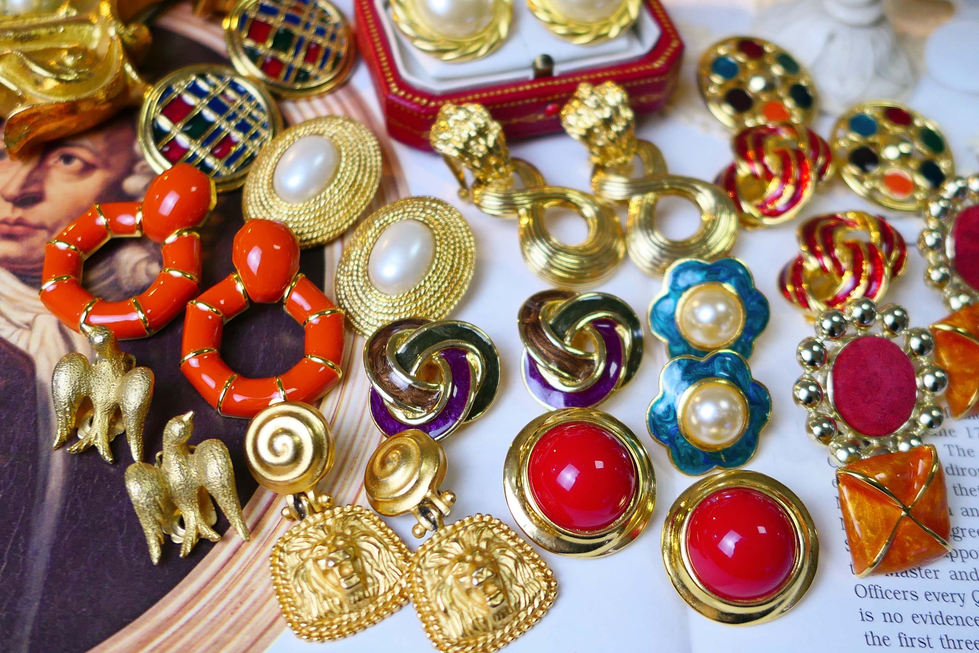 Milky white white rice white light grey dark grey grey silver black orange red pink gold color pink gold (VINTAGE sold out of no-back) A-gilded edge pearl ear clip B-green enamel