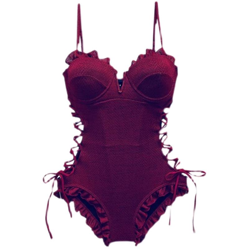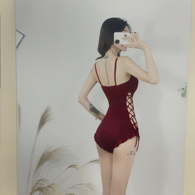 Swimsuit Women's Summer 2022 New Korea Wine Red Sexy with Body Harness Poly to Cover Belly's Advanced Sensation Swimsuit