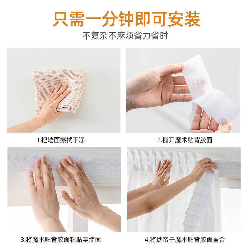 Self-adhesive balcony curtains mesh yarn magic adhesive window mantle Inwind short curtains Half-curtain small window Bedroom Girls' Day