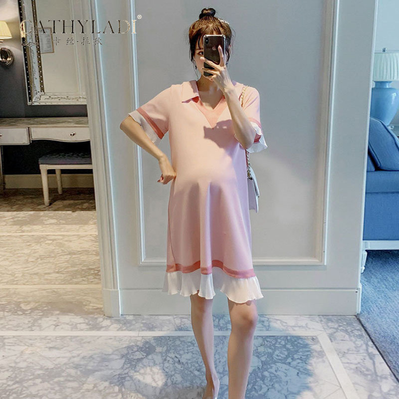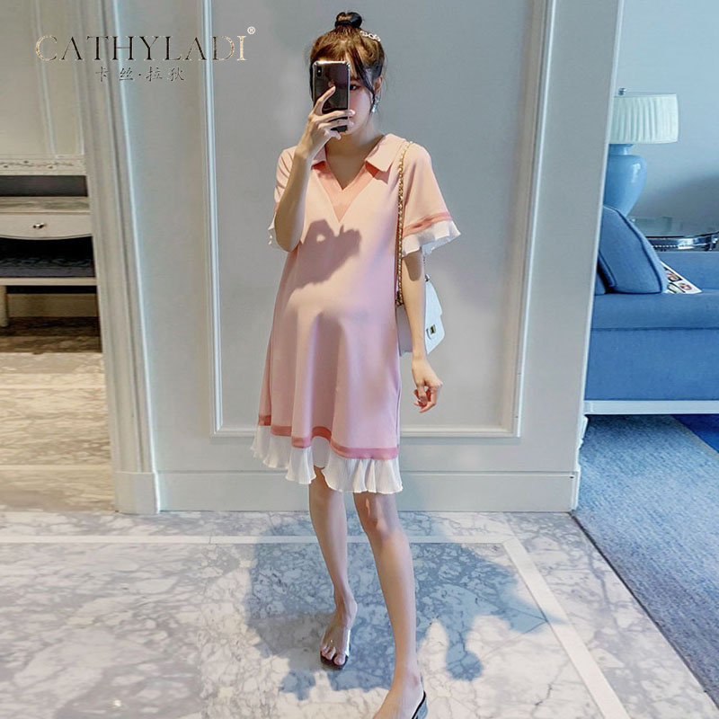 CATHYLADI maternity clothes 2021 summer clothes new foreign style age reduction does not show fake two-piece dress hot mom