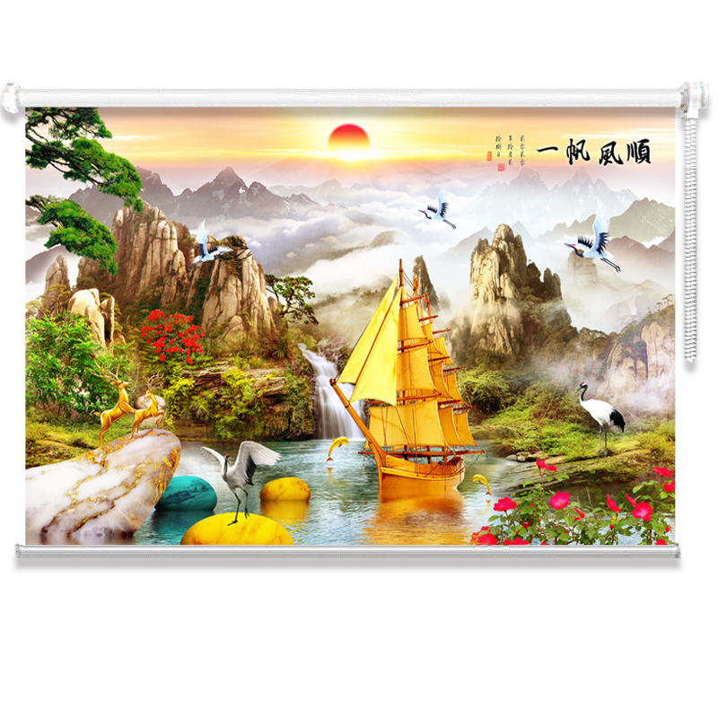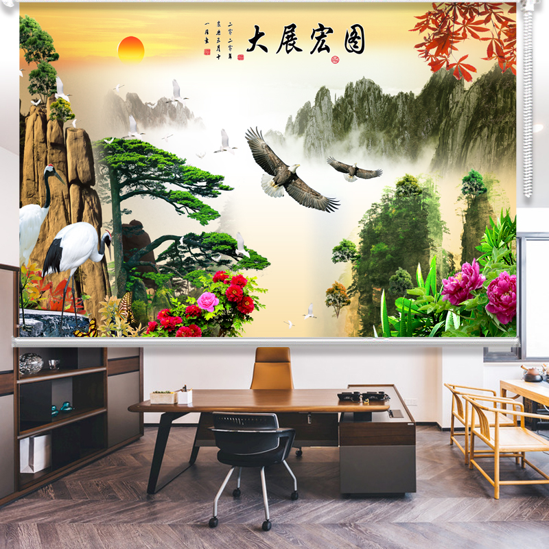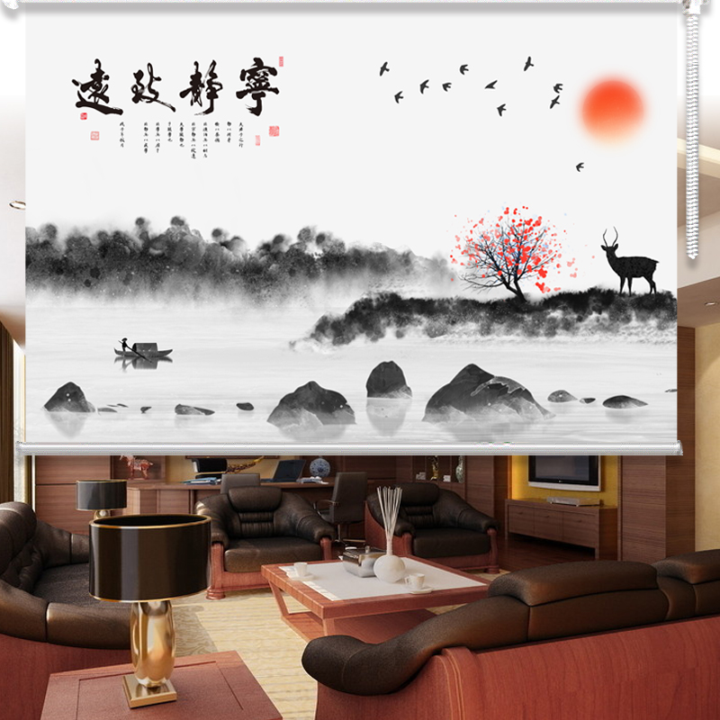 Customized landscape painting landscape roller blind curtain New Chinese style office living room partition curtain sunshade sunscreen hand pull curtain