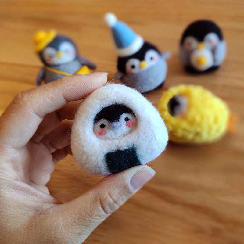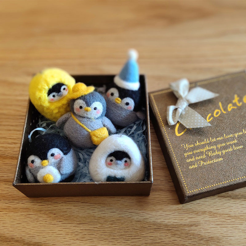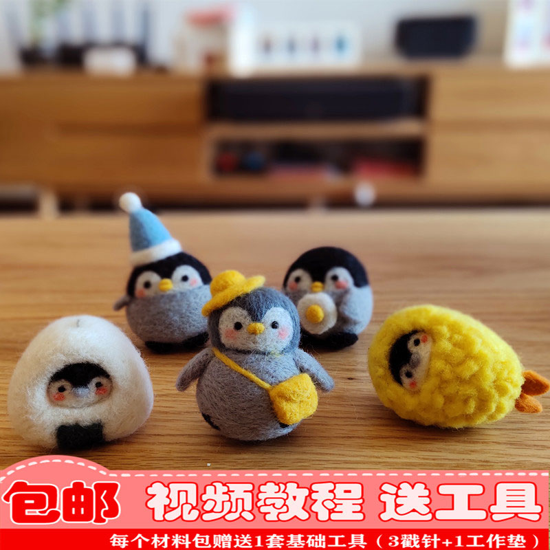 Boutique wool felt poke poke music handmade diy material package sushi penguin gift box doll doll cartoon mobile phone chain