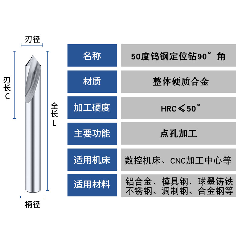 50 degree tungsten steel fixed-point drilling hard alloy positioning drill 90 ° numerical control centering drill center drilling CNC machining