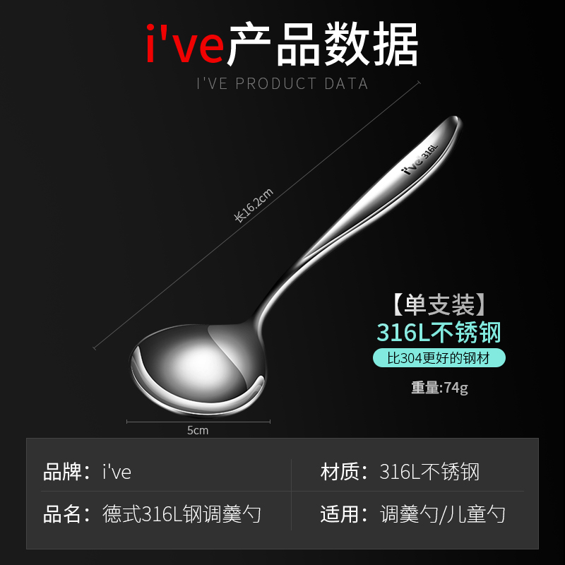Germany ive 316 stainless steel spoon home children eat drink soup small soup spoon net red spoon large size ins wind