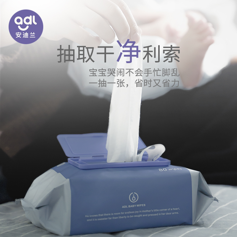 Andy Lan wet towels baby special wet paper towels newborn baby boy baby hand mouth fart wet paper towels 80 draw 20 packs
