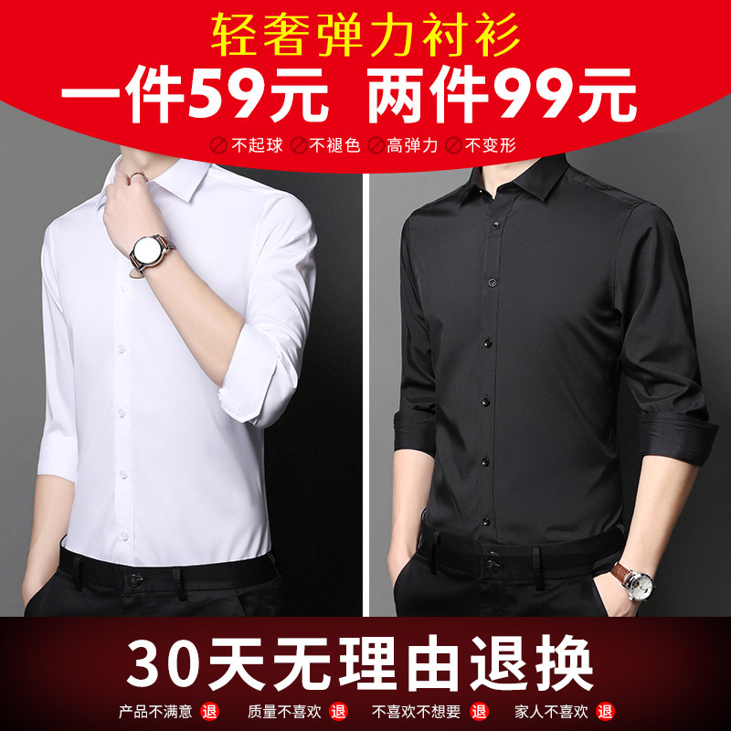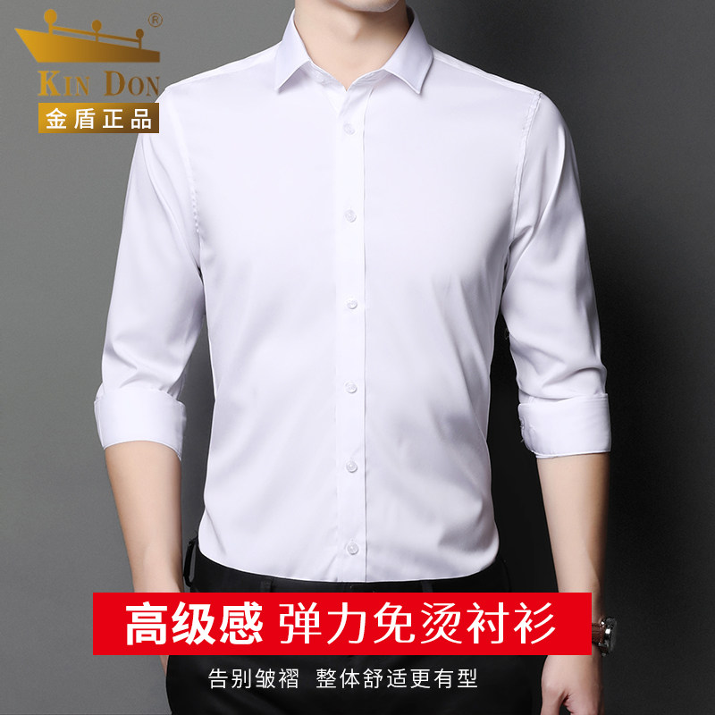 KIN DON GOLD SHIELD BLACK SHIRT MEN FREE IRONING BIG SIZE BUSINESS POSITIVE FIT INSIDE LAP SHIRT SPRING STYLE FASHION MEN INCH