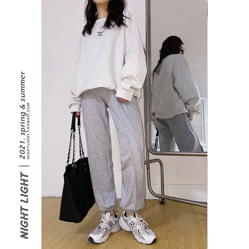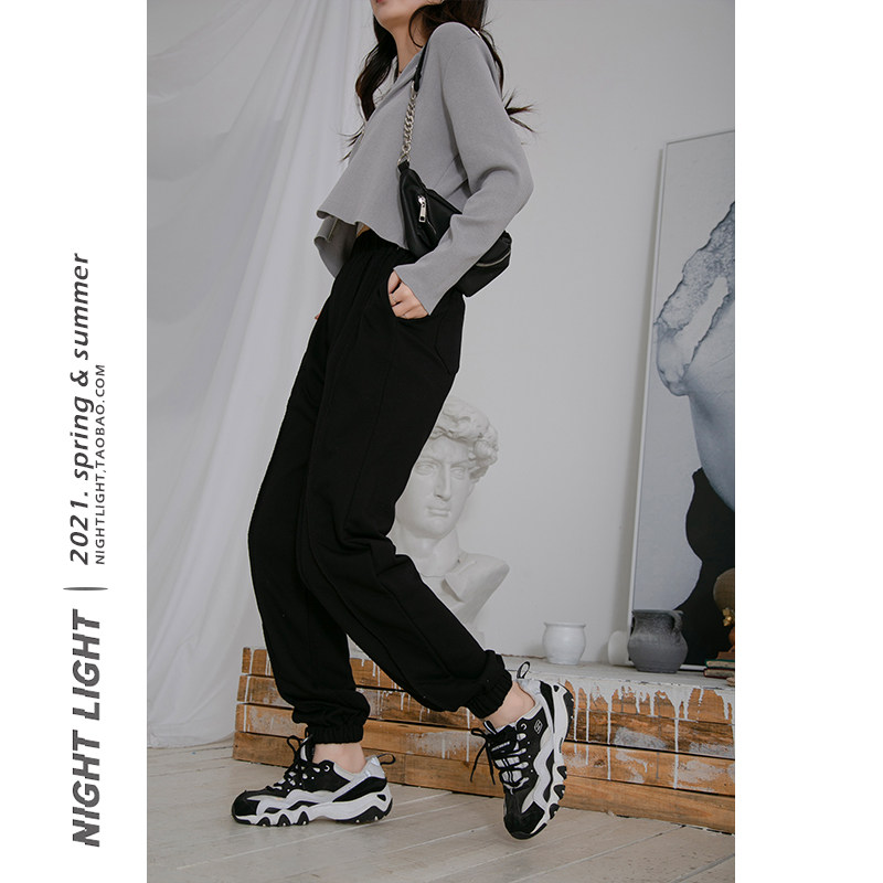 Kharen Pants Woman Tight Waist High Waist Bunches Pants 2021 Spring Autumn Small Feet Pure Cotton Casual Pants Trousers Long Pants Sports Pants