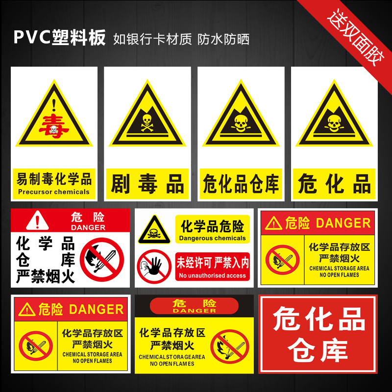 Hazardous chemicals warning signs (PVC board) (3 discounts) Hazardous chemicals warning signs (aluminum) (3 discounts) (KT board silver frame) Precursor chemicals warehouse storage management