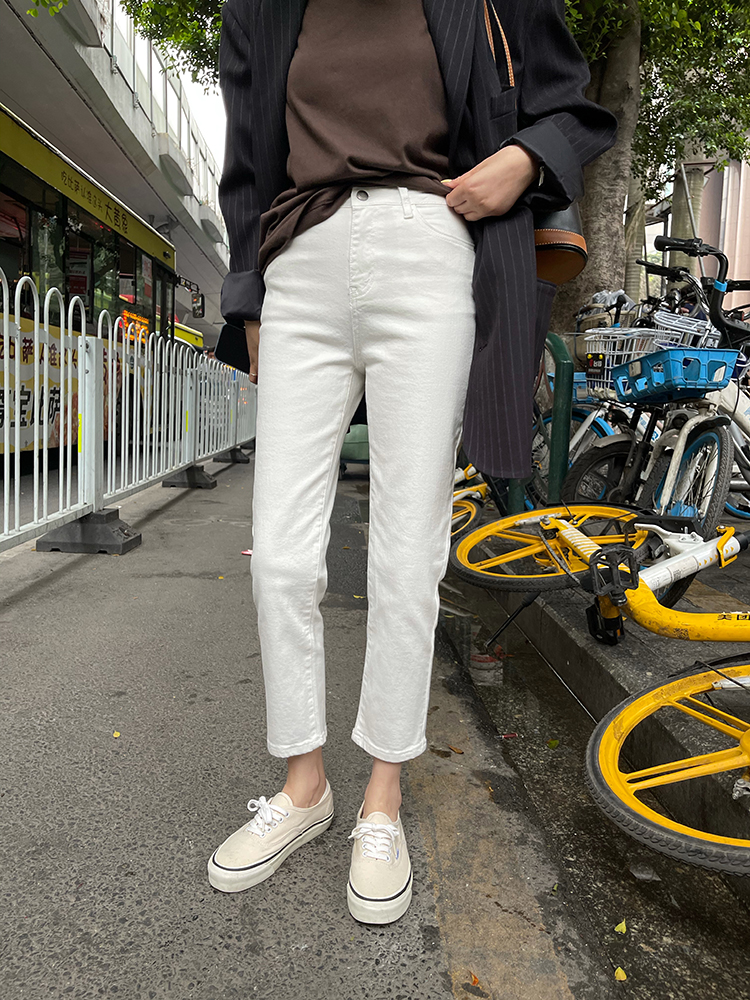 wipelia Chen Ji Children's white jeans 2021 Spring new small straight cylinder loose display slim 90% pants w05-21