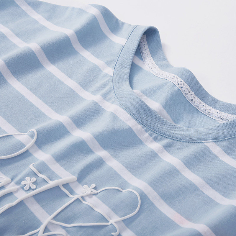 Three guns home clothes suit women's summer water soft cotton round neck short sleeve pants pure cotton pajamas women's living clothes 81892