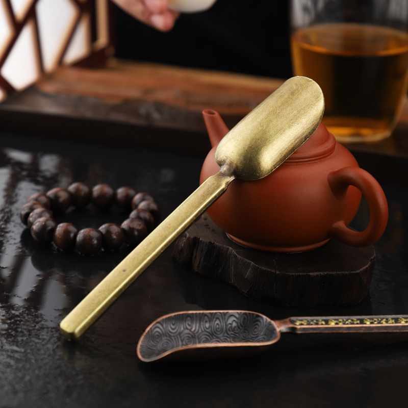 Moire teaspoon-Bronze Moire teaspoon-Copper dustpan Teaspoon-Bronze dustpan Teaspoon-Copper Ruyi teaspoon-Bronze Ruyi teaspoon-Copper thick earth teaspoon-Green