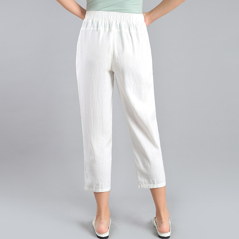 Older Nine-Different Pants Summer Thin Mom Pants Relax Large Size Grandma Pants Linen Leisure Pants