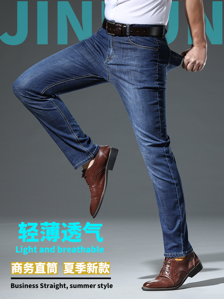 Jeans Men's Summer Thin Gold Shield Middle-aged Pants Loose Straight Men's Spring and Autumn Trousers New 2021 - Taobao