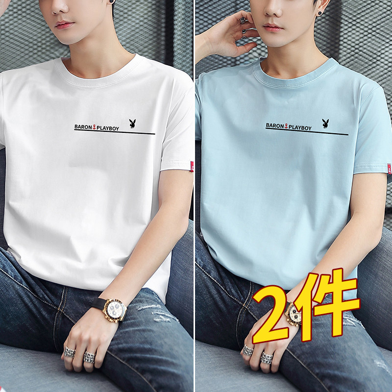 2 pieces) Playboy men short sleeves 2022 new trends Summer pure cotton T-shirt clothes half sleeve men's T-shirt