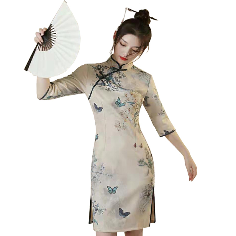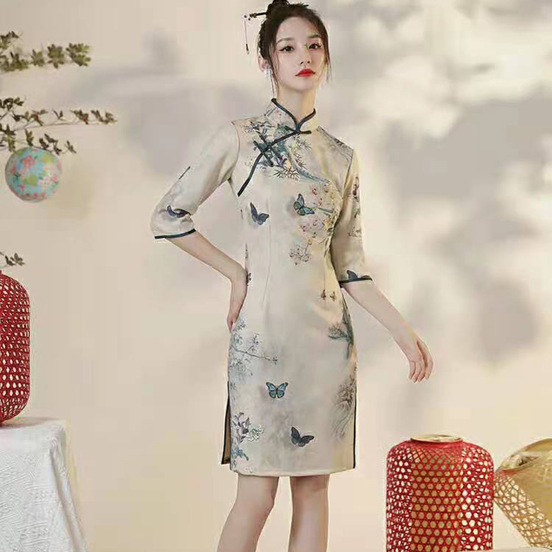 Qipao 2022 new paper-like plate cut drawings Chinese ethos The long version of the retro foreign dress cut formwork