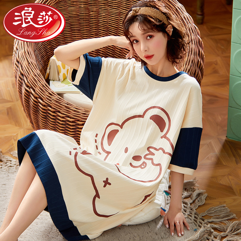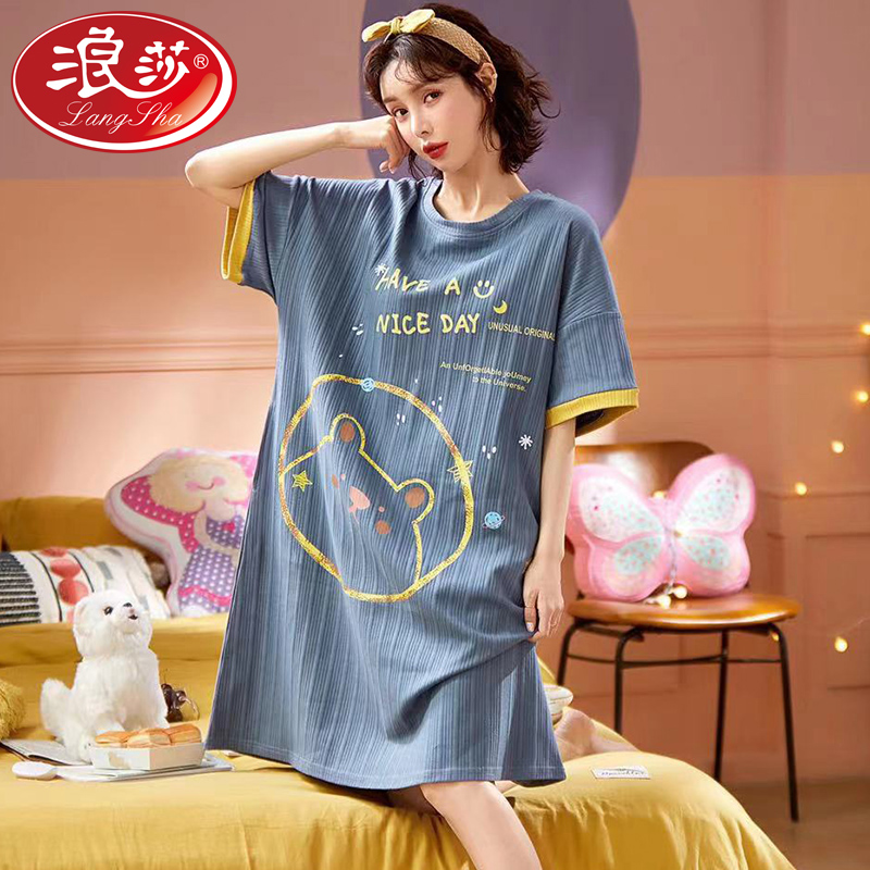 2022 New Sleeping Dress Woman Summer Slim pure cotton short sleeve Home Girl Cartoon Cute Pyjamas cute pyjamas