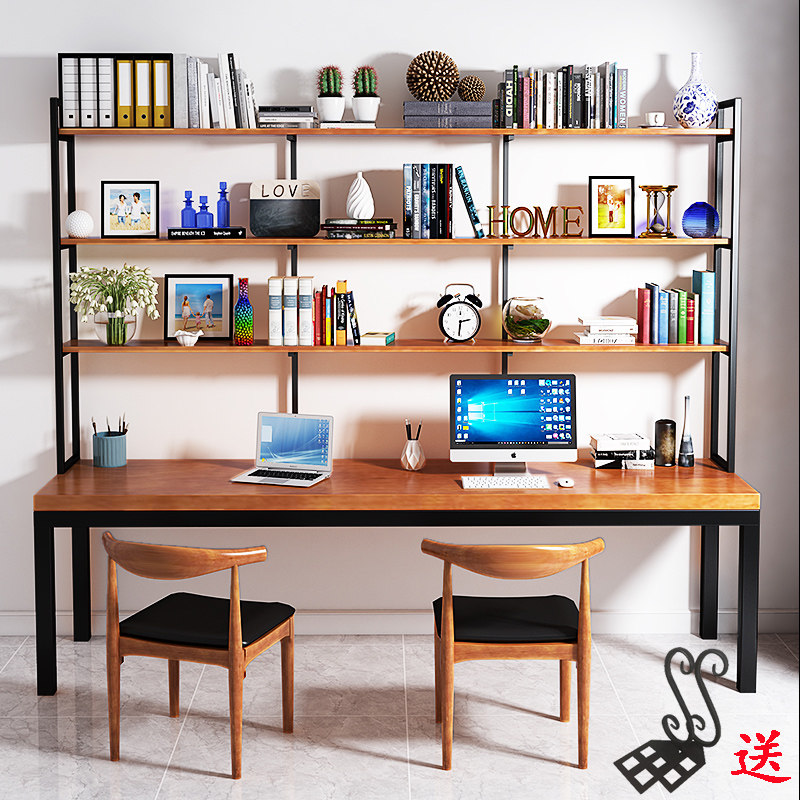 loft solid wood iron art desk bookshelf group with family bookcase desk integrated simple desk computer desk desk