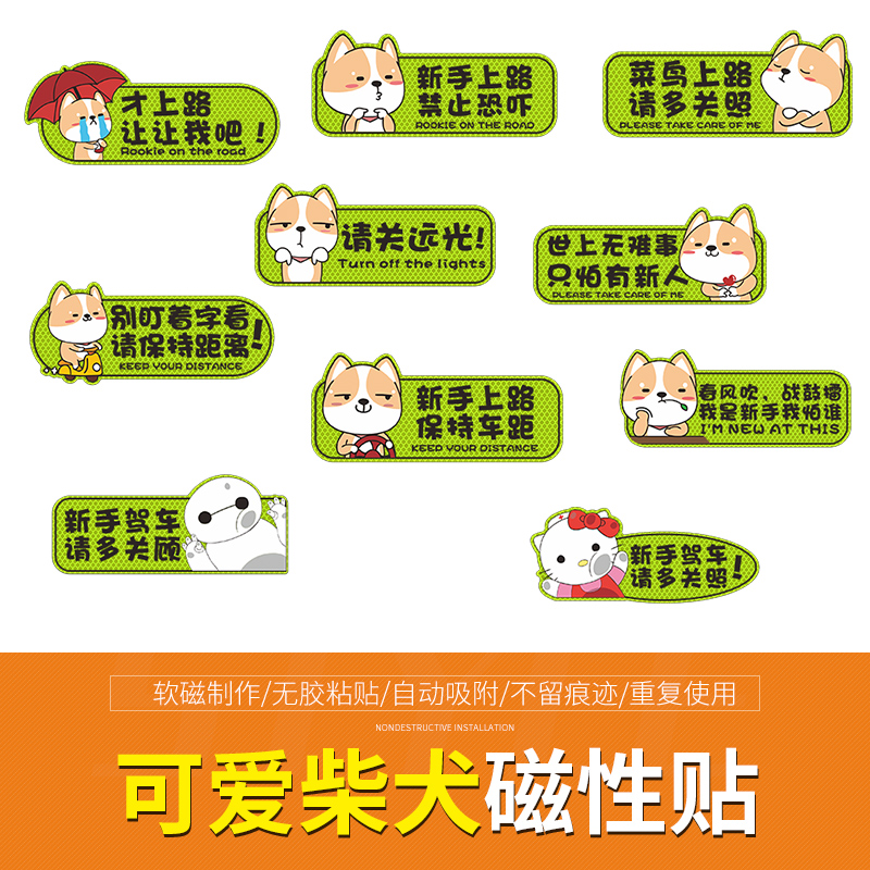 Chai Dog Reflective Patch New Hand Road Internship Sign Magnetic Attraction Car Sticker Waterproof Scratcher shelter Magnetic patch Decorative Car Sticker