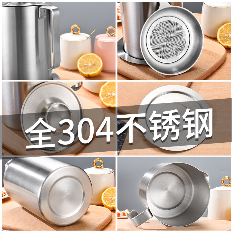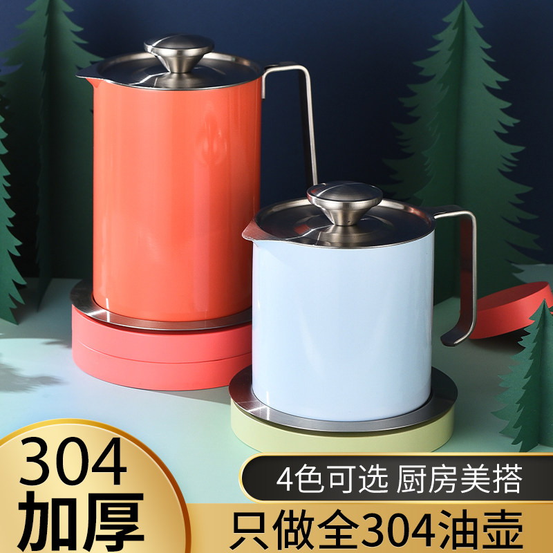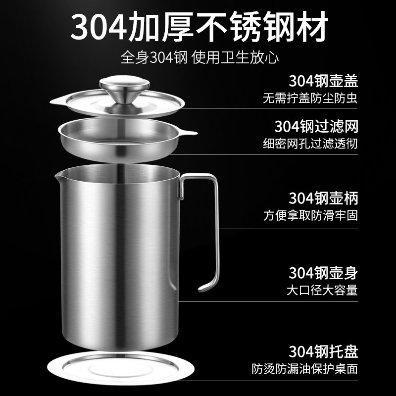 Oil pot 304 stainless steel oil storage tank pot with filter screen kitchen household oil drum oil bottle oil residue pot oil filter artifact