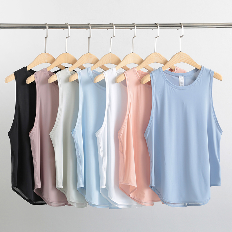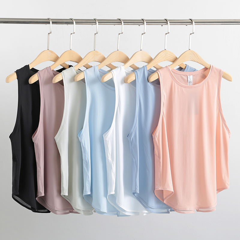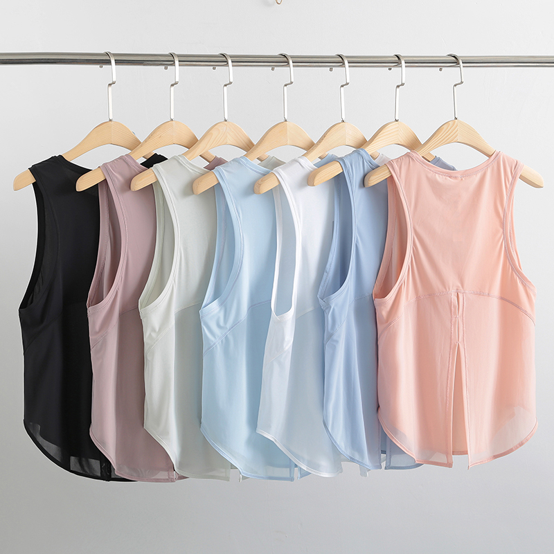 lulu yoga suit women sports vest speed dry nude nude fitness blouse with sleeveless loose beauty back mesh veil