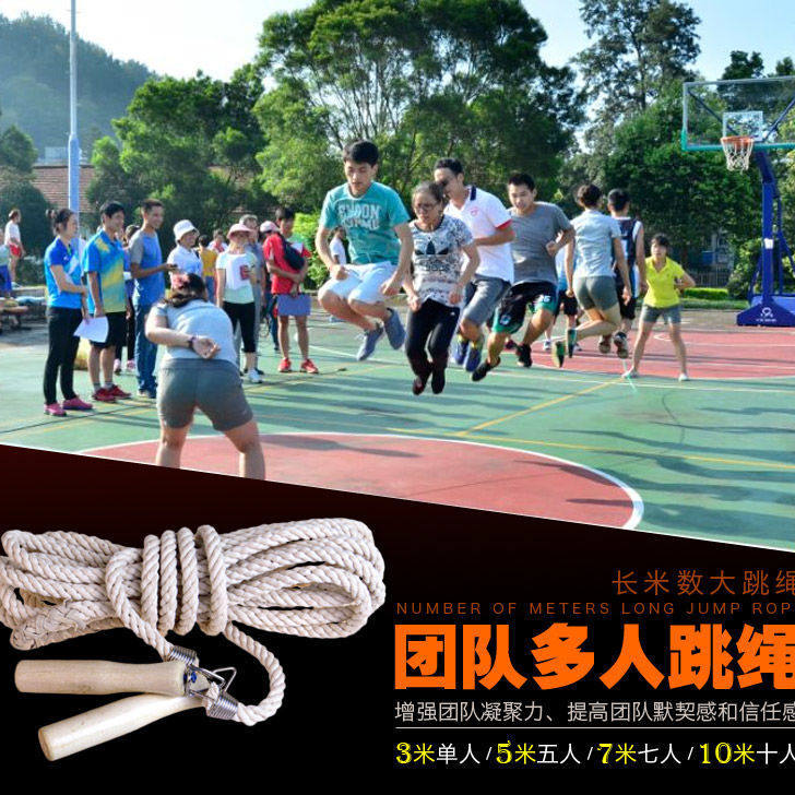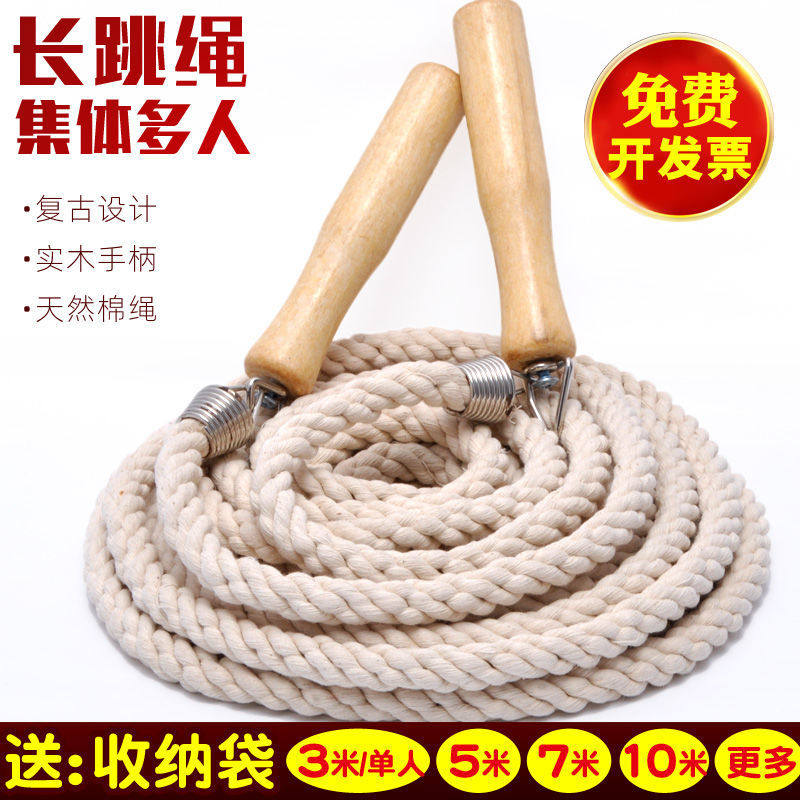 Jump rope fitness hemp rope student with woven rope multiple people jumping for three meters 7 m training wood handle for eight words big jump rope