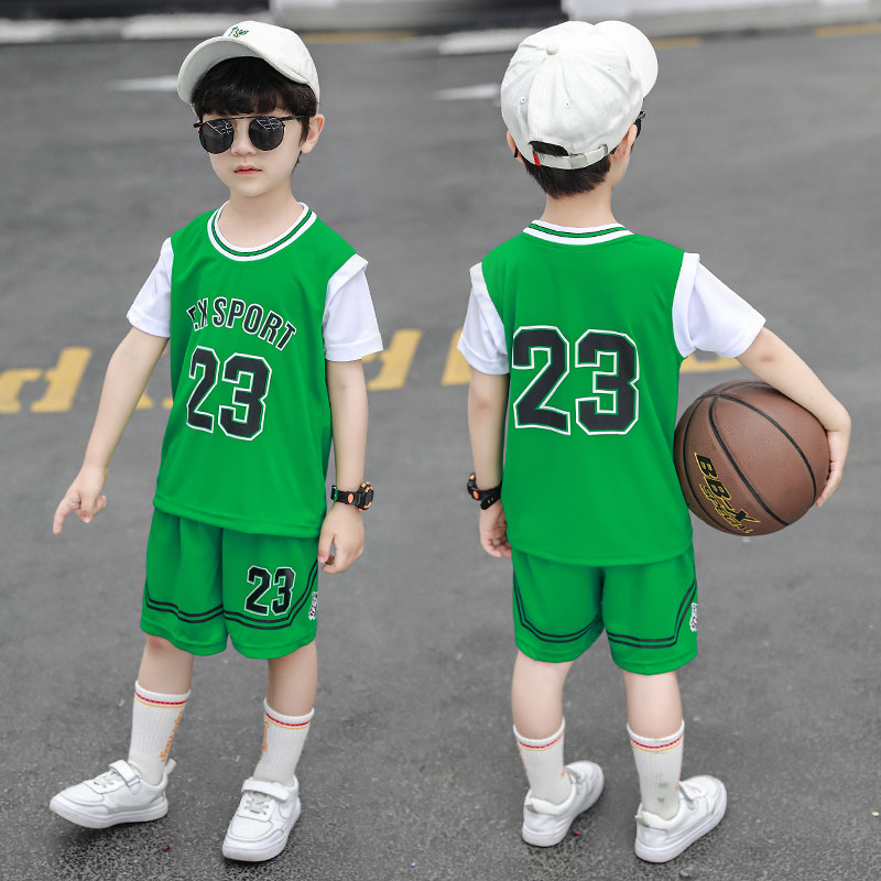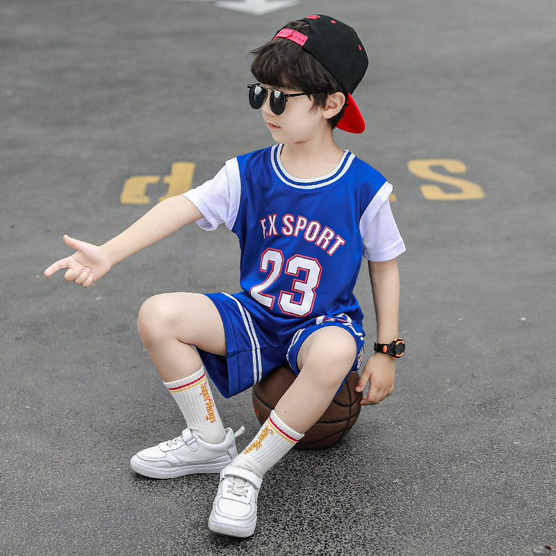 South Korean boy basketball suit 2021 Summer new short sleeves Children's jersey suit speed dry clothes CUHK Scout clothes