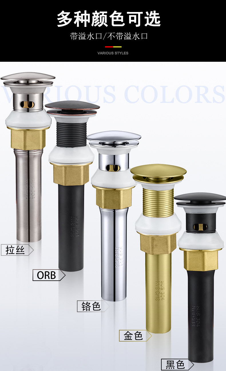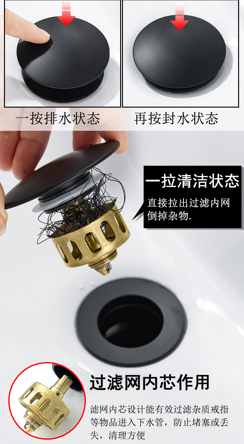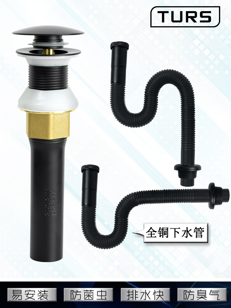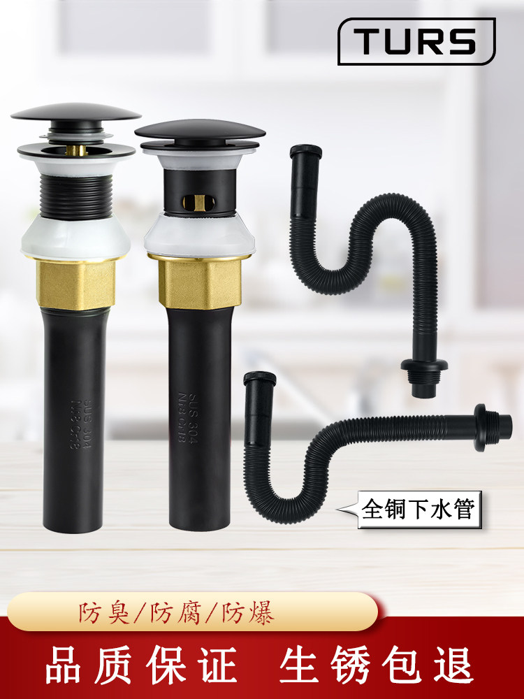 German black bouncing water receiver 304 stainless steel wash basin sink leak plug washbasin sewer fittings