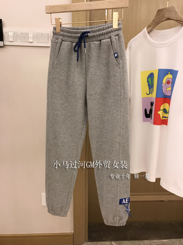 Trouser reputation king 2021 spring dress new high waist slim blue alphabet leisure beam feet Harlen pantyard female