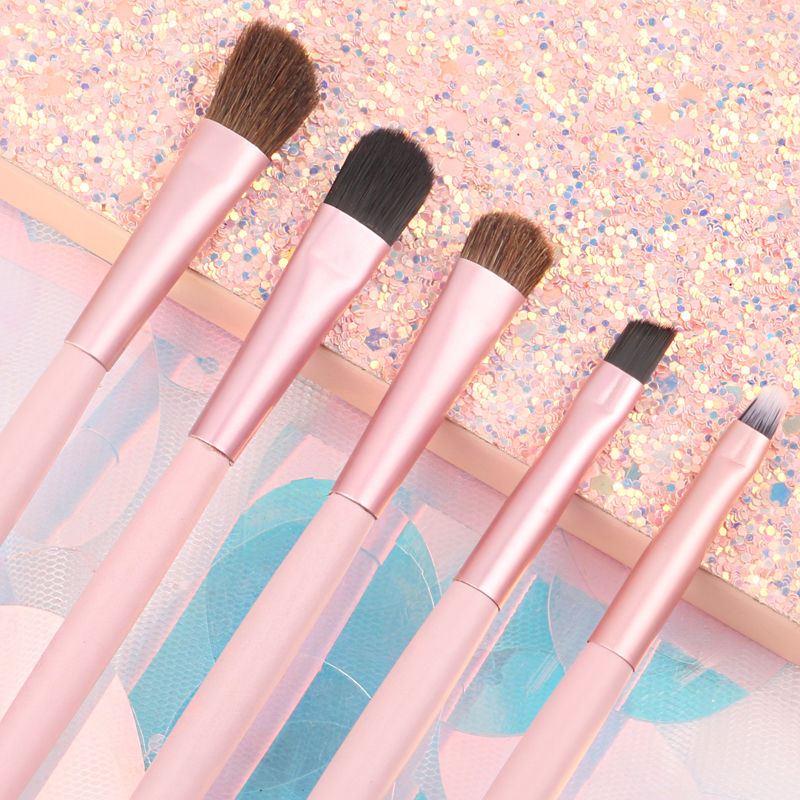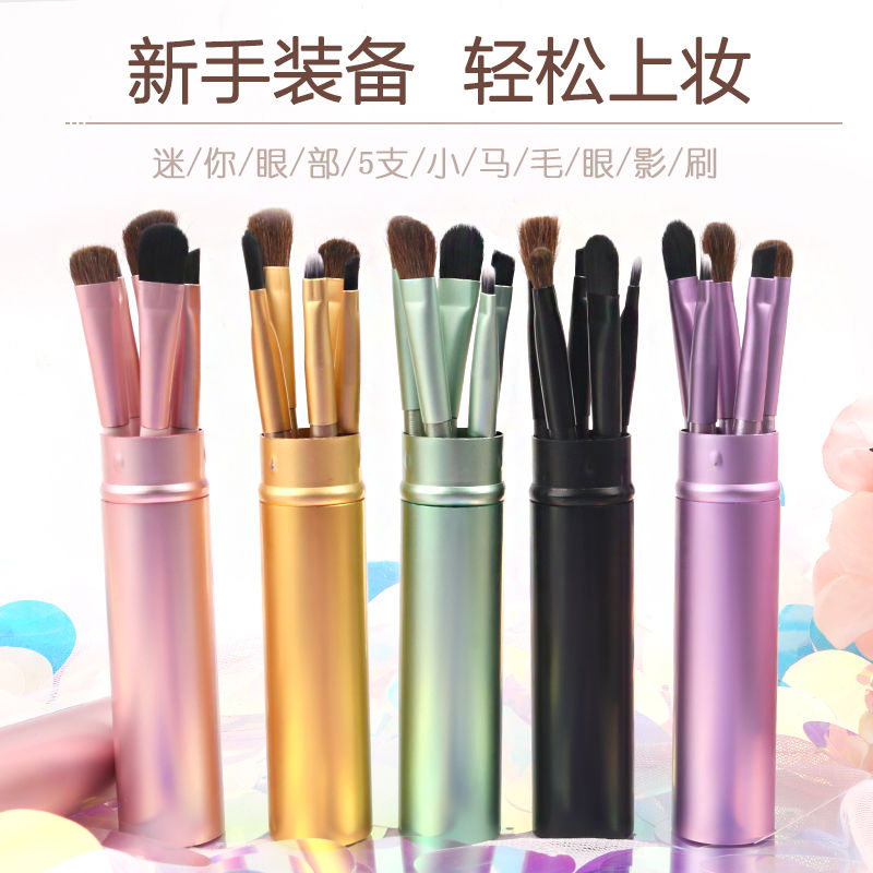 Disposable eyeliner brush 5 makeup brush eye shadow brush set horse hair brush aluminum tube portable full set of makeup tools