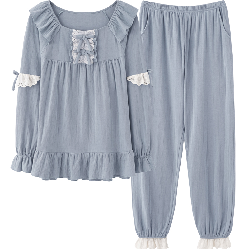 Mark princess couple pajamas women spring and autumn pure cotton long-sleeved princess wind home clothes suit men 2021 new summer