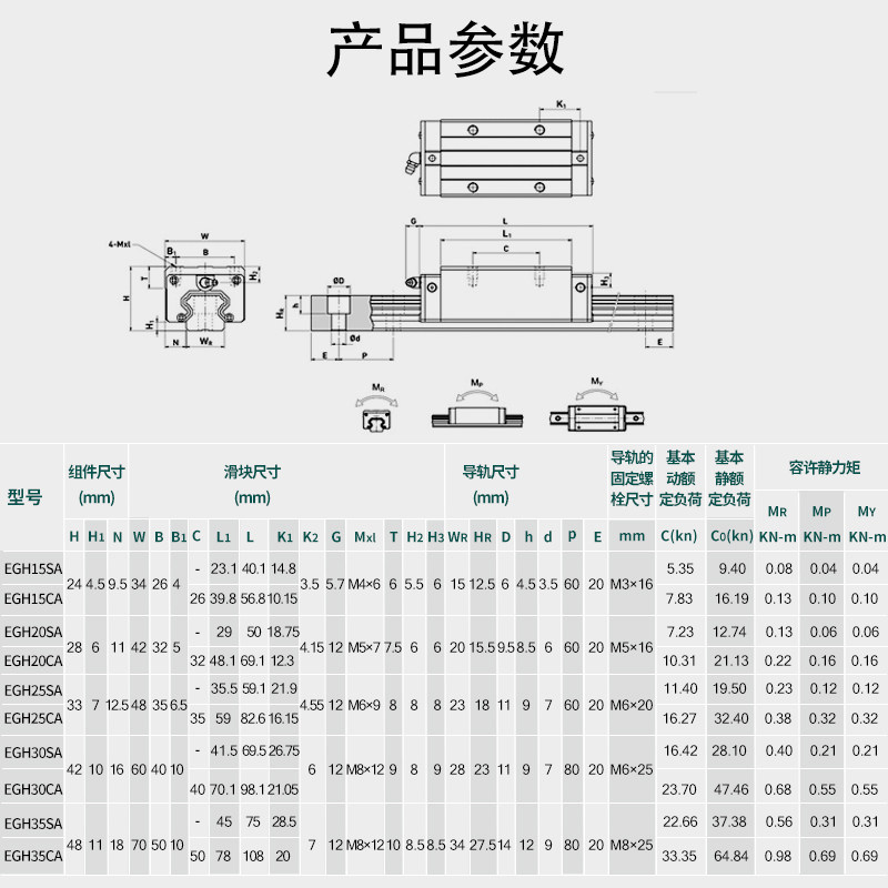 Rail -EGR30R 1000mm EGH15SA (2-hole square slider) rail -EGR25R 1000mm EGH20SA (2 holes square