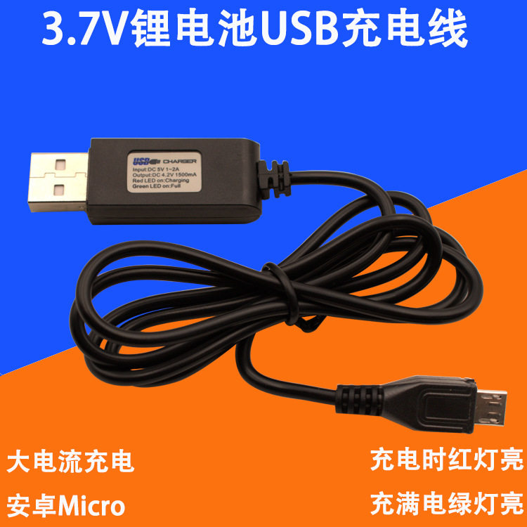 USB charging line 4 2V large current 18650 Lithium battery charging red light full green light Android Micro plug