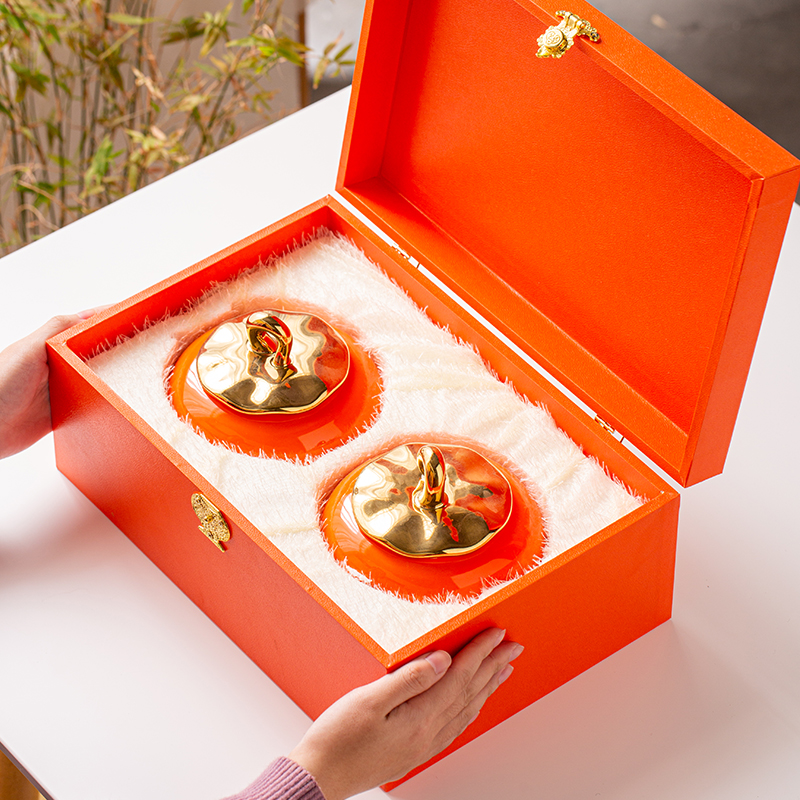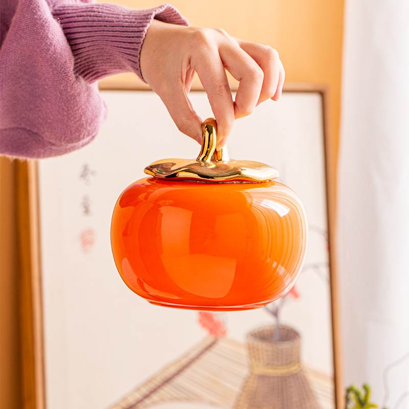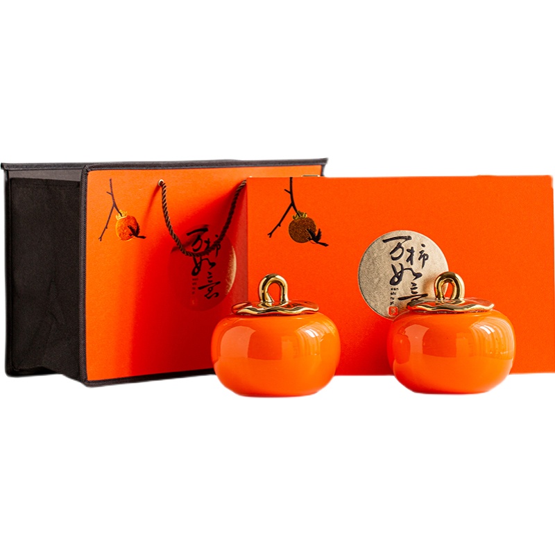 Ceramic Tea Leaf Pot Creative Persimmon Big Gift Box Packaging Empty Box Black Tea Green Tea Seal Tank Double Jar Gift Customisation