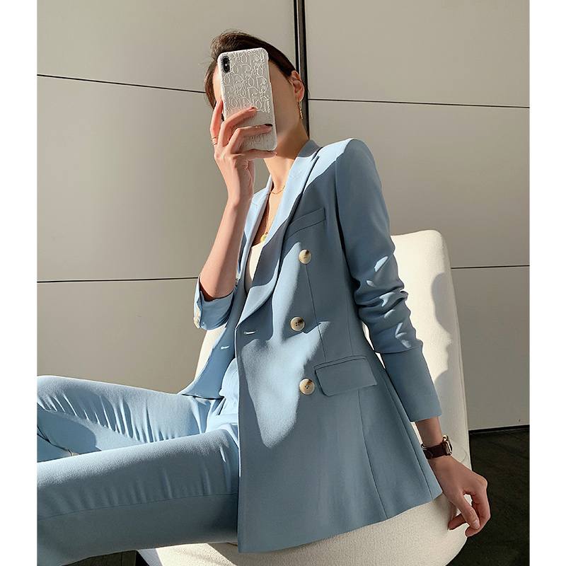 YIMU early spring suit jacket women's spring and autumn design sense niche 2022 new high-end light blue professional suit