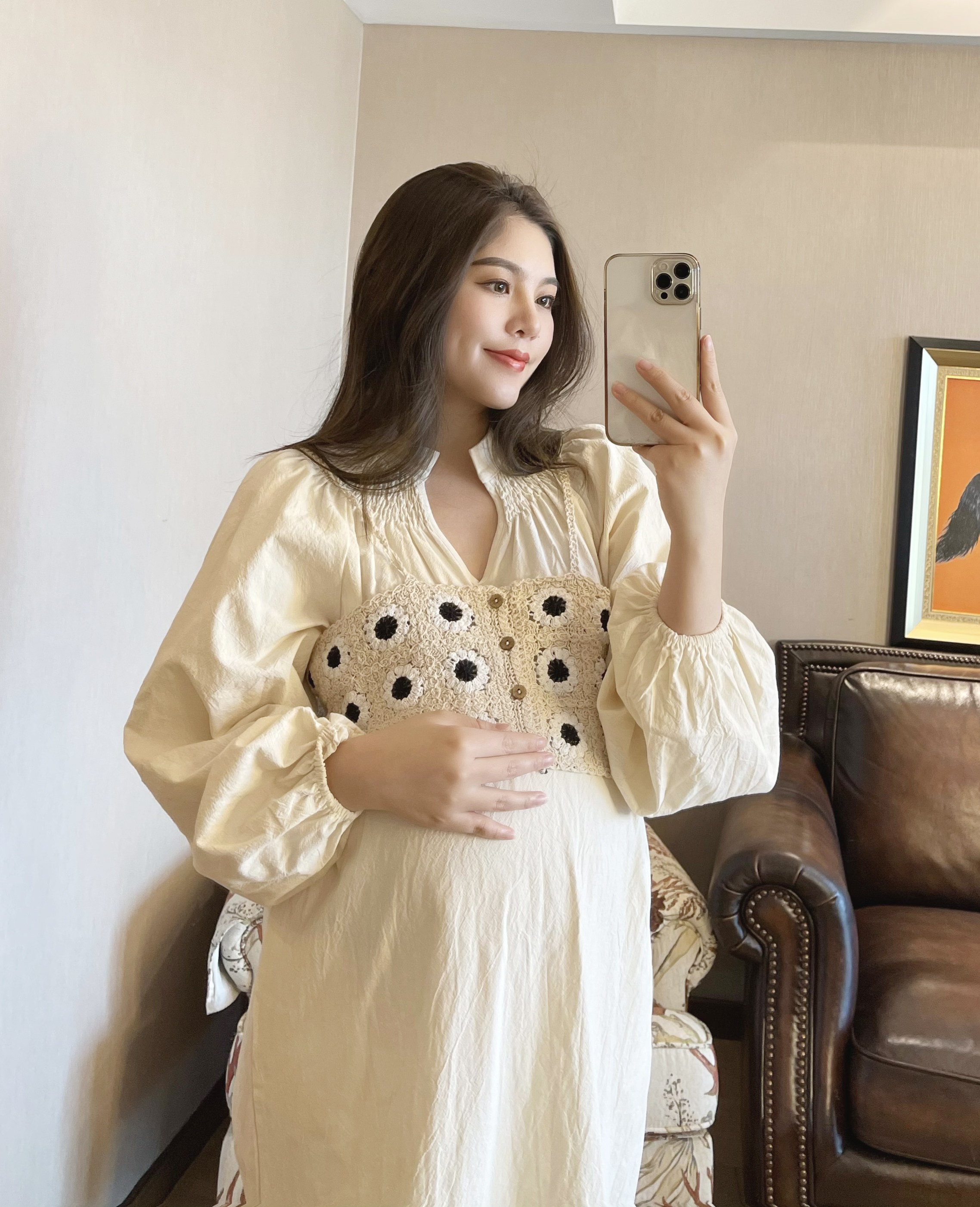 PEIPEI gestational dress 2021 new two sets of cotton linen dress woman great size for spring and autumn long dress
