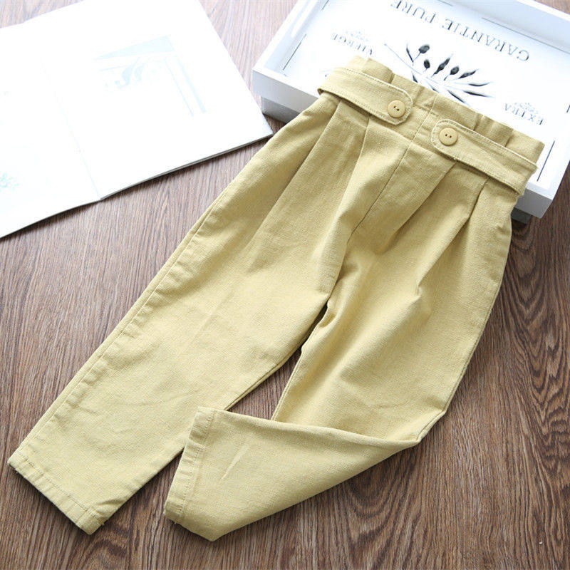 Foreign Pie ~ Girl Loose Casual Pants Han Edition Children's Baby Elastic Cotton Robe Pants Old Daddy Pants 20 Spring Autumn New