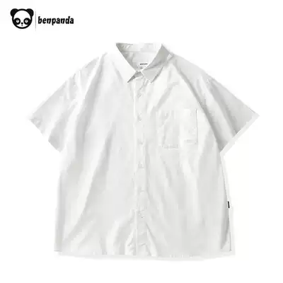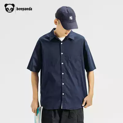 Panda summer shirt men's short sleeve design sense niche shirt tooling casual loose Japanese solid color shirt