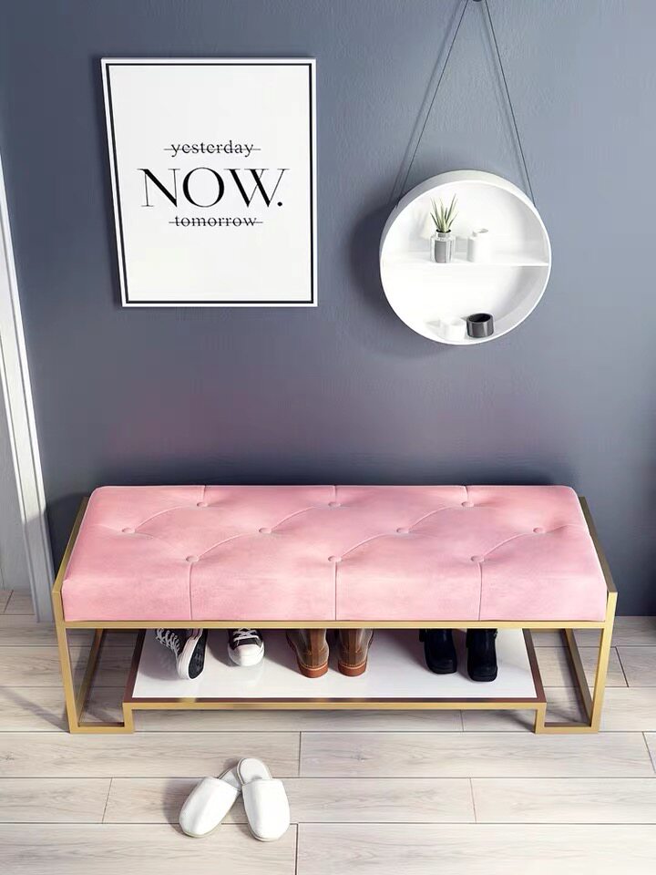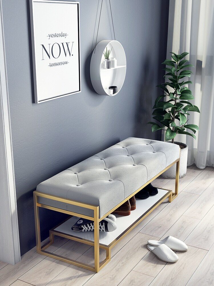 Nordic light luxury shoe stool home door bedroom simple bed tail stool low stool modern long tail stool entry porch stool