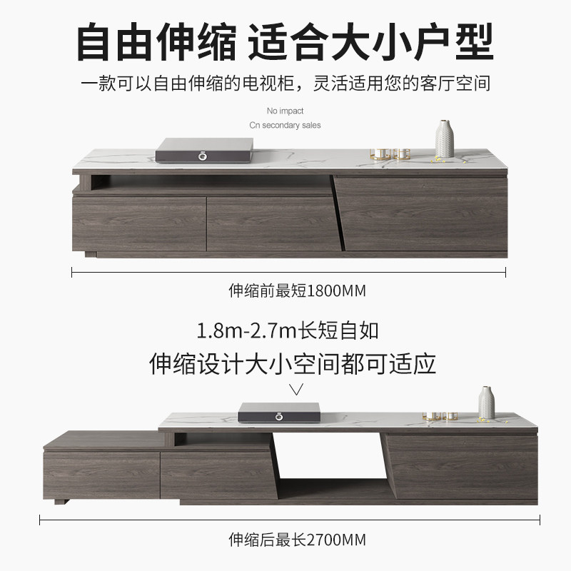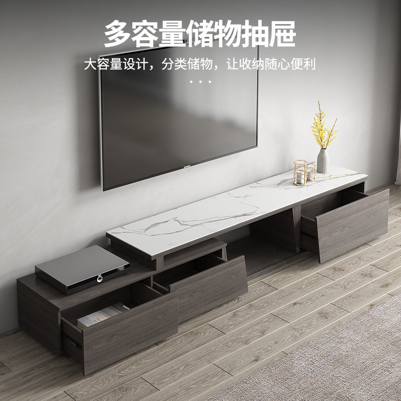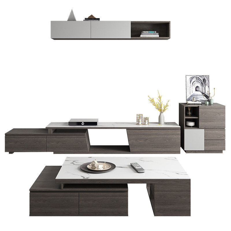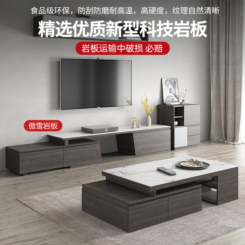 Modern simple rock board TV cabinet tea table combination set Nordic small apartment living room telescopic TV cabinet floor cabinet