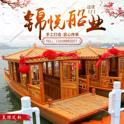 Wooden boat Painting boat Large and small water catering boat Solid wood inspection park Antique electric sightseeing tourist room Boathouse