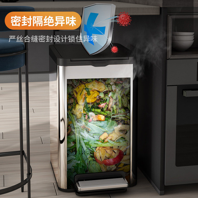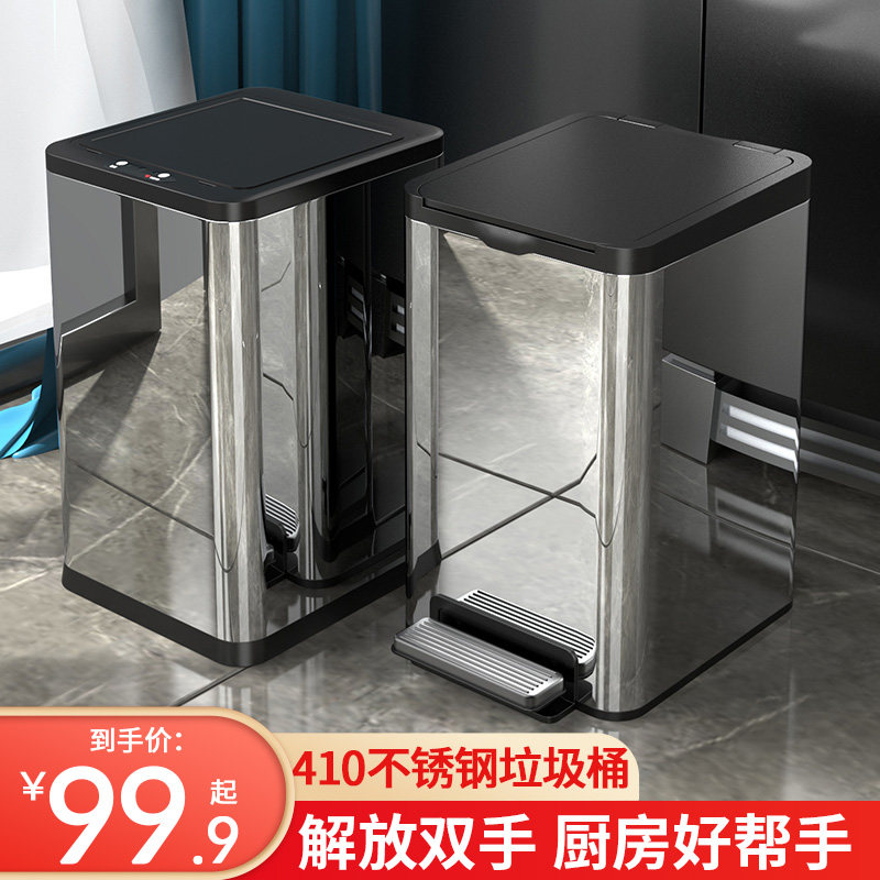 Longao stainless steel trash can home kitchen with lid foot-operated bedroom living room intelligent induction luxury large garbage