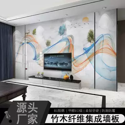 Bamboo wood fiber integrated wall panel custom TV background wall panel decorative painting living room modern minimalist Chinese wallboard