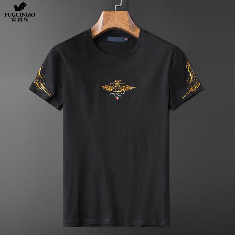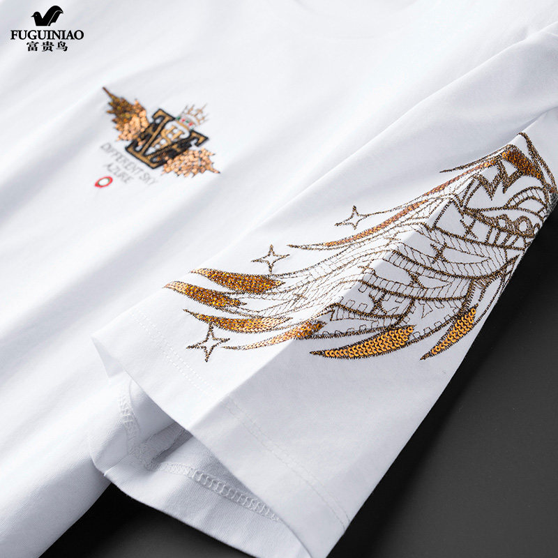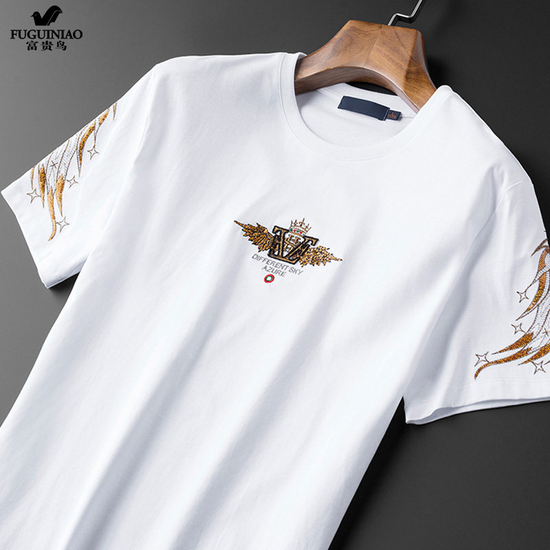 Rich Gui Bird Short Sleeve T-Shirt Male Tide Summer New Embroidery Pure Cotton Sashimi blouses Korean version Trend high-end half sleeve handsome